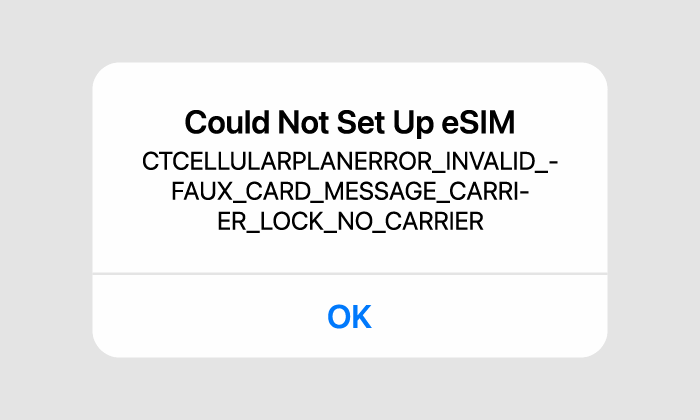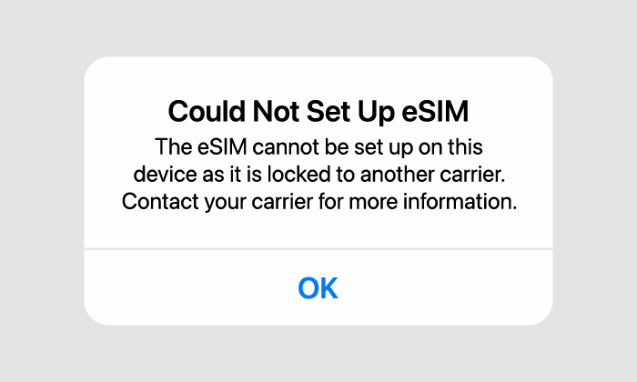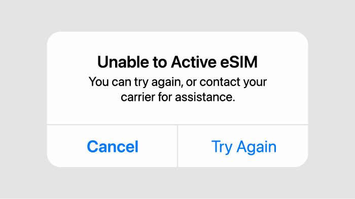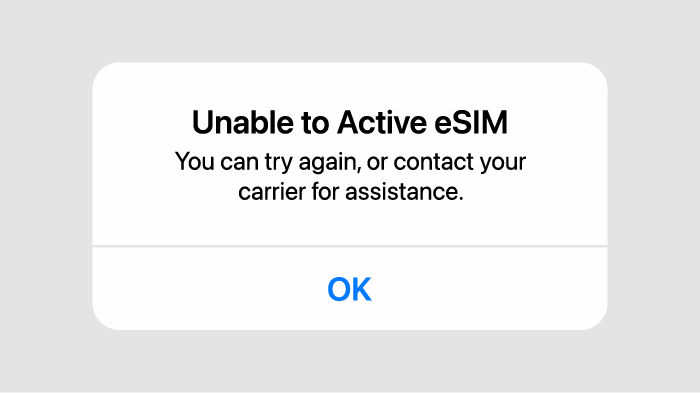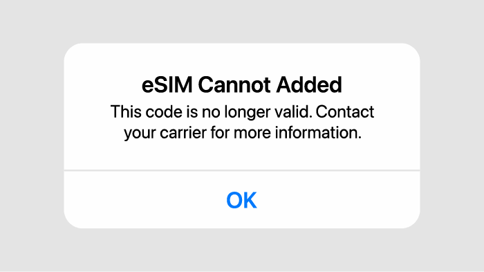 每個eSIM僅能安裝一次。若重複利用已完成安裝的eSIM,將會顯示如上述的異常訊息。